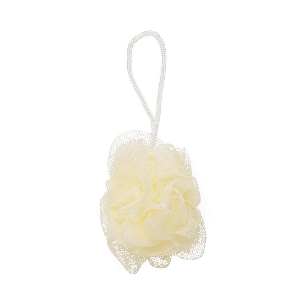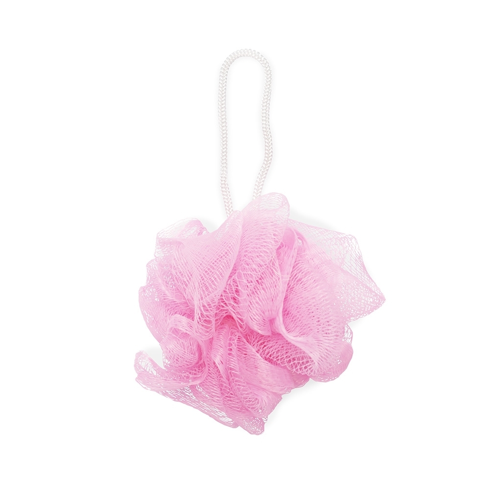 Kit banho com estilo natural envolvido em um cesto de madeira. Contém 4 itens: escova de madeira com cerdas macias, pedra-pomes, esponja redonda e uma esponja de nylon.